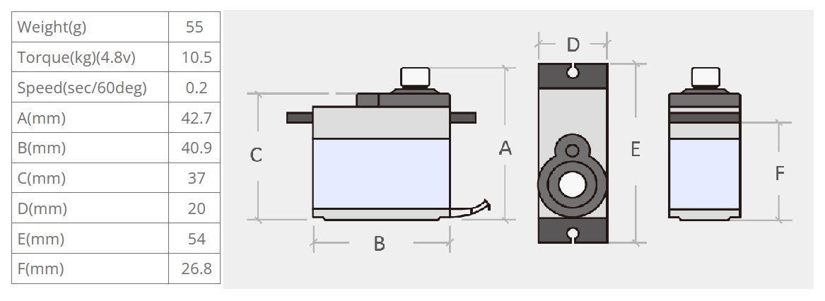 - 0.20 sec/60° @ 4.8V